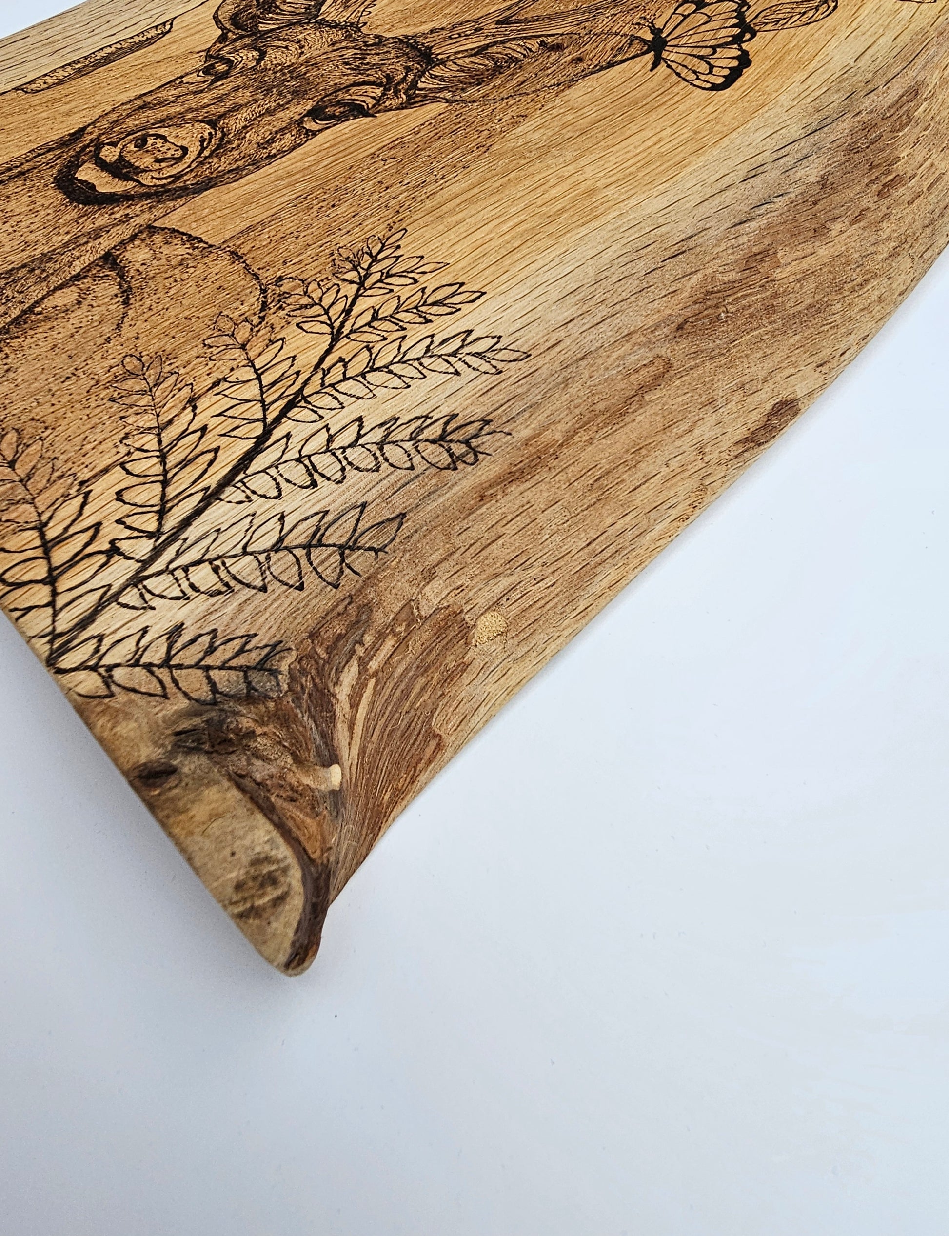 Bring the serenity of the forest into your home with this handcrafted Deer & Butterfly Wood-Burned Art Panel. This piece is made from natural solid oak wood burned by hand using traditional pyrography techniques.